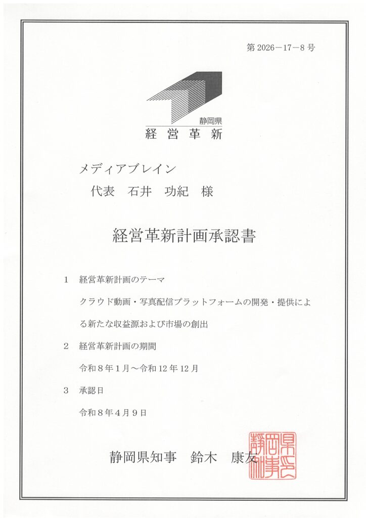 このたび弊社は令和8年4月9日、静岡県より 「経営革新計画」 の承認を受けましたことをお知らせいたします。